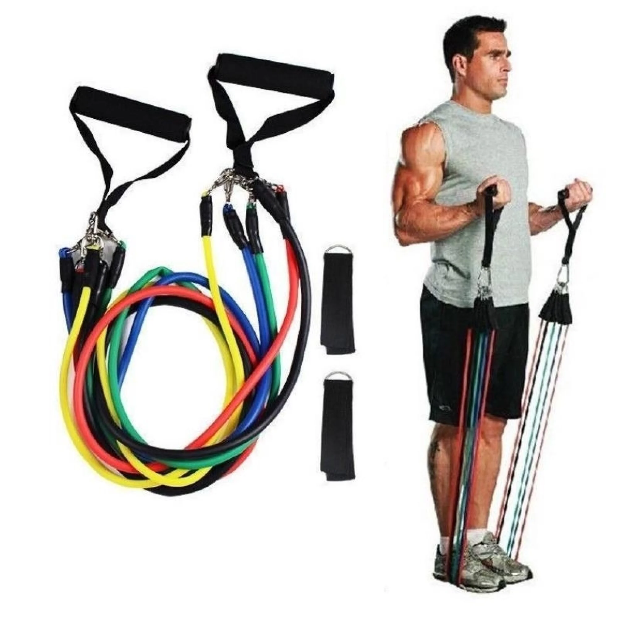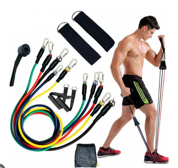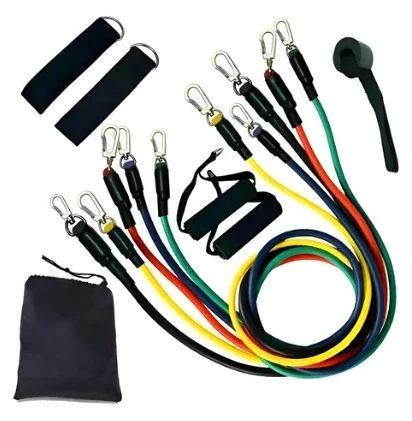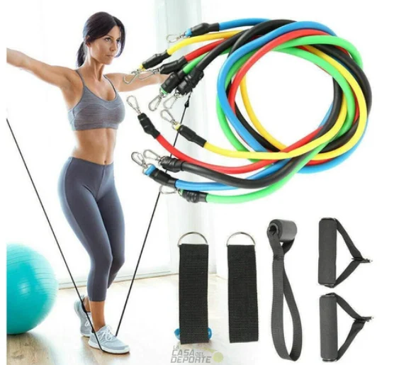 Banda elástica de resistencia para entrenamiento de fuerza. Mango está hecho de PVC de alta calidad para que sea duradero y firme al utilizar. Ejercicio versátil para todo el cuerpo: diseñado para una completa activación. Las bandas son pequeñas, ligeras y se pueden recoger fácilmente e tu bolso o utilizando nuestra bolsa de transporte. Tu gimnasio personal en casa: puedes utilizar las bandas de resistencia con correas de tobillo y accesorio de puerta para hacer ejercicio mientras estás en todas partes. Tanto si eres un principiante como un atleta profesional, puedes encontrar la intensidad adecuada de tu entrenamiento.